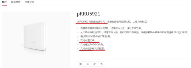 華為的Lampsite室分系統(tǒng)解決方案,屬于有源室分,PRRU5921是安裝在樓宇里面的“小盒子”,它是Lampsite解決方案的一部分,,而支持的多頻多模,筆者猜測很大可能是針對一家運(yùn)營商2G/3G/4G/5G