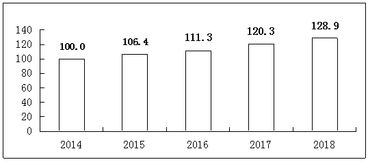 本年全國綜合發(fā)展指數(shù)值達(dá)到128.9,比上年上升8.6個(gè)分值。近四年來,總指數(shù)呈現(xiàn)穩(wěn)步提升趨勢,年均上升幅度為7.2個(gè)分值,近兩年增長明顯快于前兩年。
